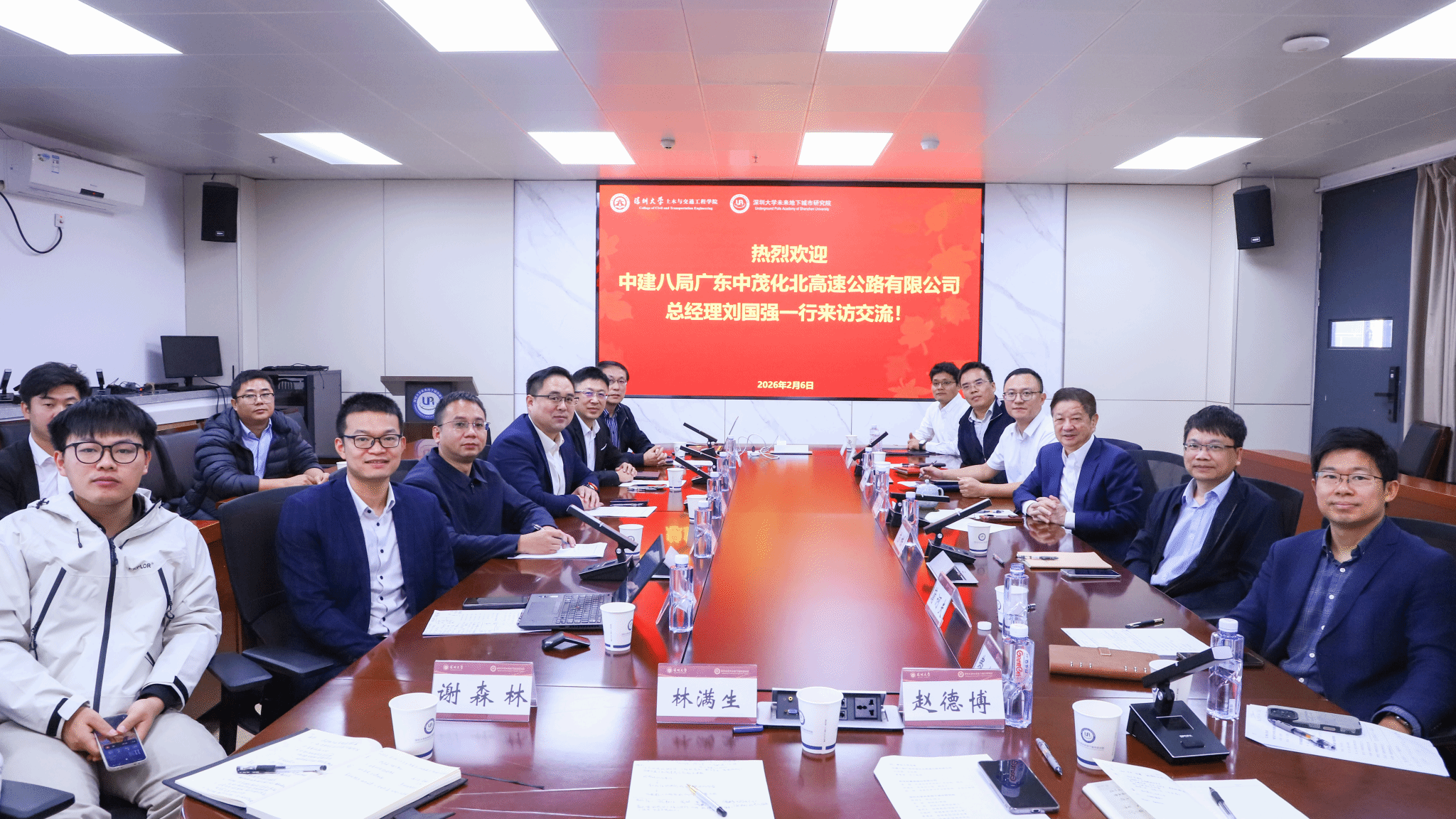 2026年2月6日上午,中建八局广东中茂化北高速公路有限公司总经理刘国强一行来访我院交流。深圳大学未来地下城市研究院院长陈湘生院士,副院长苏栋教授、李栋教高,蒲诃夫教授、费建波教授、孙晓辉教授等10余名师生现场参会。副院长李栋主持本次会议。此次交流会在粤海校区(南区)致理楼1007会议室举办。中建八局广东中茂化北高速公路有限公司刘国强总经理介绍来访嘉宾,李栋教高对来访嘉宾表示欢迎,并介绍我院参会老师。中建八局广东中茂化北高速公路有限公司总工程师黄看源介绍广东中茂化北高速公路的项目概况。...