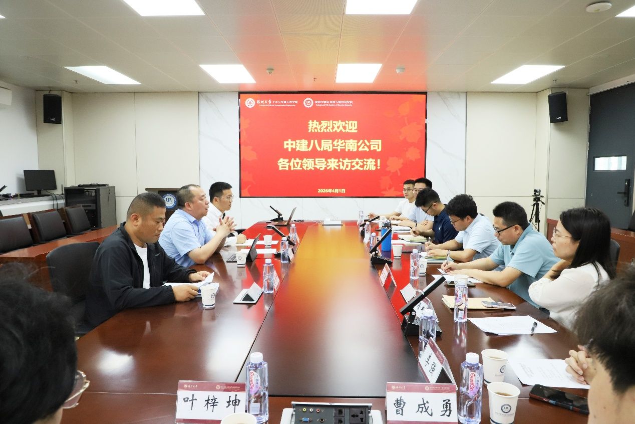 2026年4月1日上午,中建八局华南公司副总工杜佐龙一行来访我院进行项目交流。会议由我院研究员洪成雨主持,副院长苏栋教授、特聘教授吕海敏、副教授蒋卫平、副教授薛召杰等10位老师参加会议。双方围绕宝安机场T2航站楼及相关配套工程中的数字地下空间、基坑监测、桩基检测、内涝风险防控、施工物流组织等专题研究展开深入交流。本次科研进展会在粤海校区(南区)致理楼1007会议室召开。会上,我院团队围绕数字化平台建设、施工进度可视化、...
