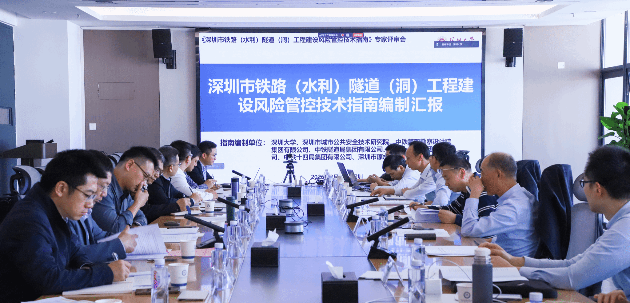 2026年2月6日下午,《深圳市铁路(水利)隧道(洞)工程建设风险管控技术指南》(以下简称《指南》)专家评审会在深圳大学召开。会议采用线上线下相结合的方式进行。来自中国铁道学会、中铁第一勘察设计院集团有限公司、中国国家铁路集团有限公司、厦深铁路广东有限公司、深圳市地铁集团有限公司、中铁工程设计咨询集团有限公司、中铁隧道局集团有限公司、中铁建南方建设投资有限公司、中水珠江规划勘测设计有限公司、中国水利水电第十四工程局有限公司等单位的11位评审专家,...