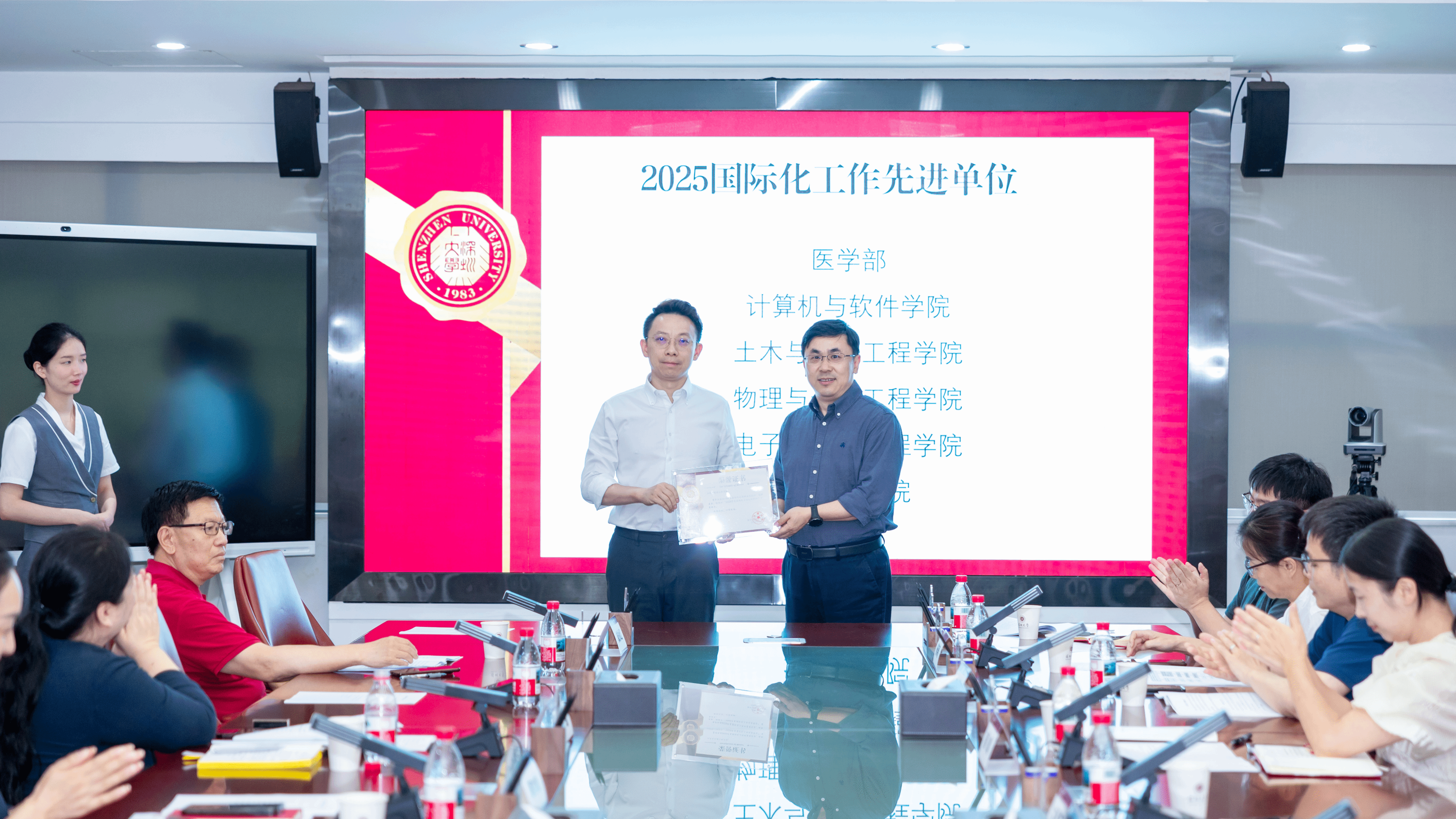 巢乃鹏副校长为我院颁发“2025年度国际化工作先进单位”荣誉奖牌4月16日下午,学校隆重召开2026年度外事工作会议,我院龙武剑执行院长与外事秘书代表学院参加本次会议。会上,巢乃鹏副校长全面总结学校2025年度国际化工作开展情况,系统回顾了全校在国际交流合作、海外高端人才引进、中外合作办学提质、师生跨境学术交流、国际科研协同创新等方面的重点工作与扎实成效,充分肯定了全校各单位在推进教育对外开放、提升办学国际影响力进程中取得的亮眼成果,...