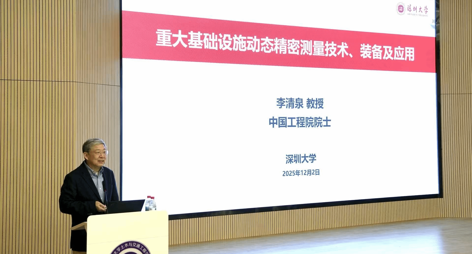 2025年12月4日19:00,李清泉院士在致工楼A431报告厅开展《土木工程概论》(第四讲)专题讲座。智慧交通系主任朱家松教授主持讲座,青年教师代表及2025级全体新生参会聆听。李清泉院士以《重大基础设施动态精密测量技术、装备及应用》为题展开报告,围绕国家重大需求,从多领域技术研发与工程应用维度,系统分享了团队的研究成果与实践经验。报告开篇,李清泉院士以“重大基础设施安全”的国家需求为切入点,阐释了动态精密工程测量的背景与意义。...