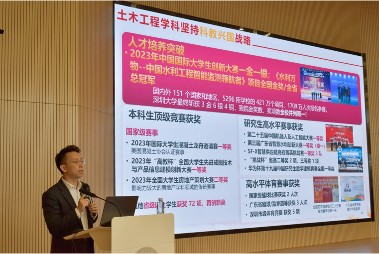 4月3日下午,我院2024年春季学期“思政第一课”暨深圳学联讲堂(第二期)在致工楼报告厅开讲。我院院长陈湘生院士以“土木工程发展与青年人的使命”为题,结合自身科研经历,为我院学子带来了一堂别开生面的思政课,探讨土木工程未来的发展前景,鼓励学子扛起未来之责。我院党委书记左英姿、党委副书记陈碧霞、副院长杨磊、深圳大学团委、学生代表以及各高校学联代表等现场聆听。从古代建筑材料到现代钢筋混凝土,再到智能建造的新兴领域,...