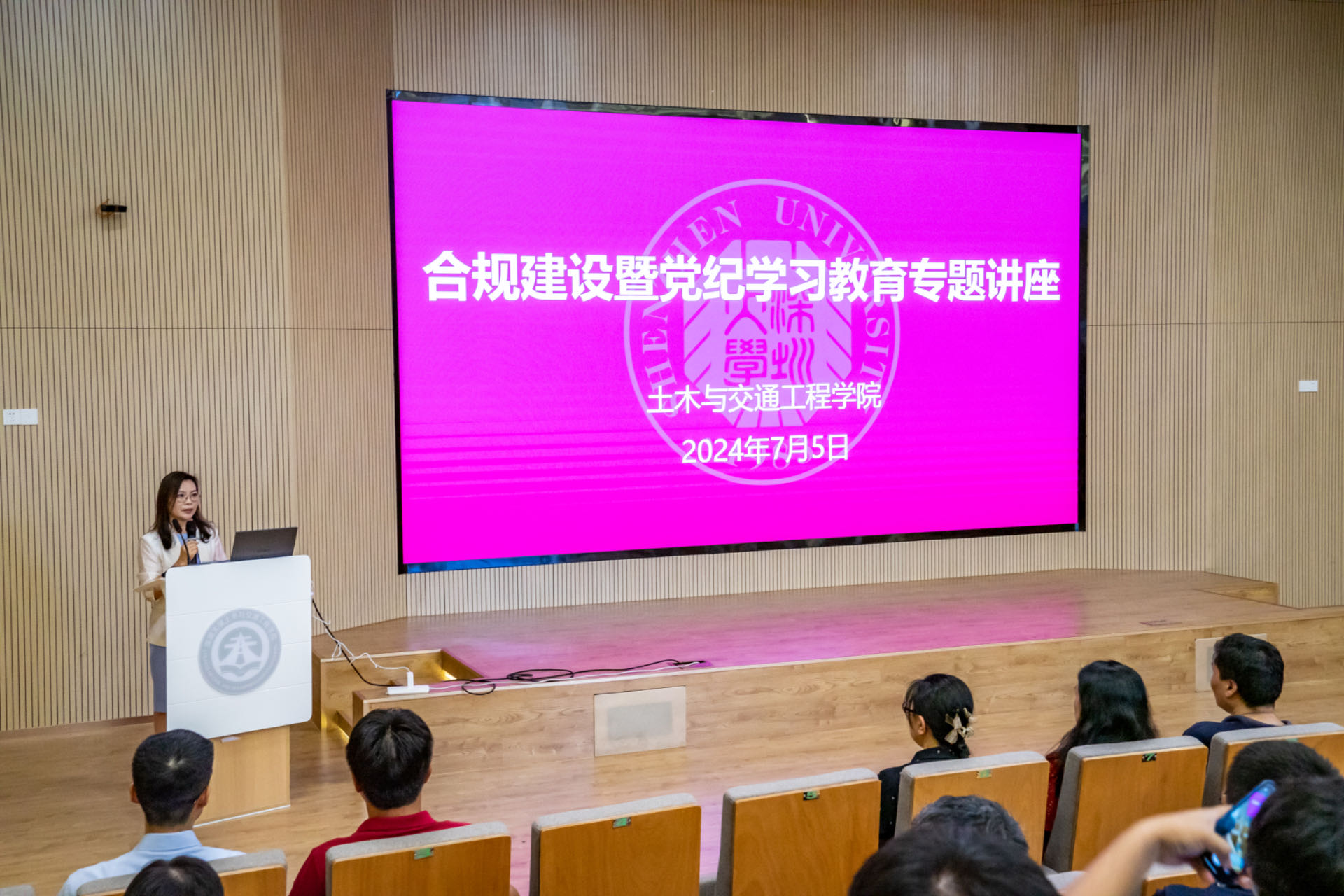 为加强学院全体教职工的合规意识,推进党纪学习教育走深走实,我院于7月5日中午在A431报告厅召开合规建设暨党纪学习教育专题讲座。本次讲座特邀深圳大学审计室段斌主任和科学技术发展研究院李洁老师作为主讲嘉宾,以及计划财务部顾园老师作为答疑嘉宾,就学校二级单位经济风险及防控和科研项目经费政策及经费业务管理进行深入解读。学院全体教职工参加本次讲座,讲座由学院党委副书记陈碧霞主持。段斌主任以《学校二级单位经济...