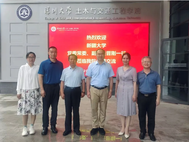 2024年7月18日下午,新疆大学党委常委、副校长晋刚,新疆大学交通运输工程学院党总支委员、副院长王兵,新疆大学教学秘书、共同体秘书邵伟伟等一行3人来访我院,并展开座谈。深圳大学党委常委、副校长周辉、党委书记左英姿、副院长邹亮、胡明伟教授等参会。座谈会由胡明伟教授主持,双方就人才培养学科建设以及如何建设交通运输产教融合体等问题展开讨论。( 双方合影 )首先,周辉副校长对新疆大学晋刚副校长一行的来访表示热...