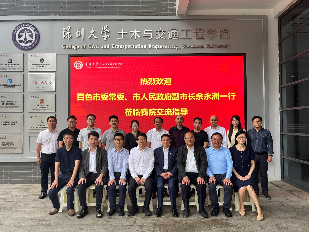 2024年11月15日上午,百色市委常委、市人民政府副市长余永洲一行莅临我校开展产学研交流。我院院长陈湘生院士、深圳大学科学技术发展研究院副院长杨强、我院副院长丁志坤、国家高层次人才“特殊支持计划”领军人才陈忠平等会见来宾,双方在深圳大学粤海校区(南区)致工楼B401会议室开展座谈,我院副院长包小华主持座谈。杨强副院长代表深圳大学致欢迎辞,对余永洲副市长一行的莅临表示诚挚的欢迎和衷心的感谢。期望通过此次交...