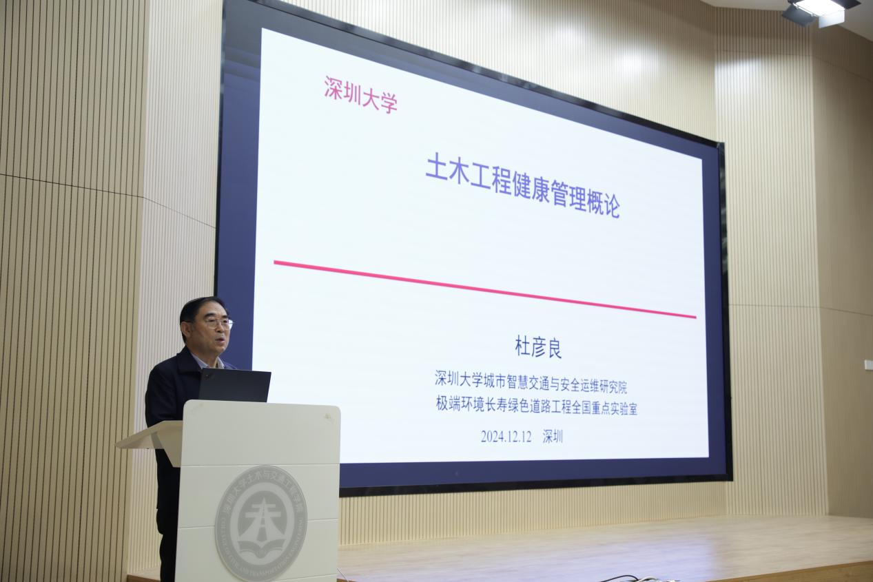 2024年12月12日19:00-21:00,我院杜彦良院士在致工楼A431报告厅为土木与交通工程学院2024级新生讲授《土木工程概论》公开课,我院副院长杨磊、土木系主任周海俊、特聘教授张连振、青年教师代表和全体2024级新生参加并听取了报告,讲座由杨磊副院长主持。杜彦良院士的专题讲座分为四个部分:土木工程历史简介、土木工程取得巨大成就、土木工程发展方向、土木工程健康管理。全面深刻地分析了我国土木工程发展技术现状,重点介绍了...