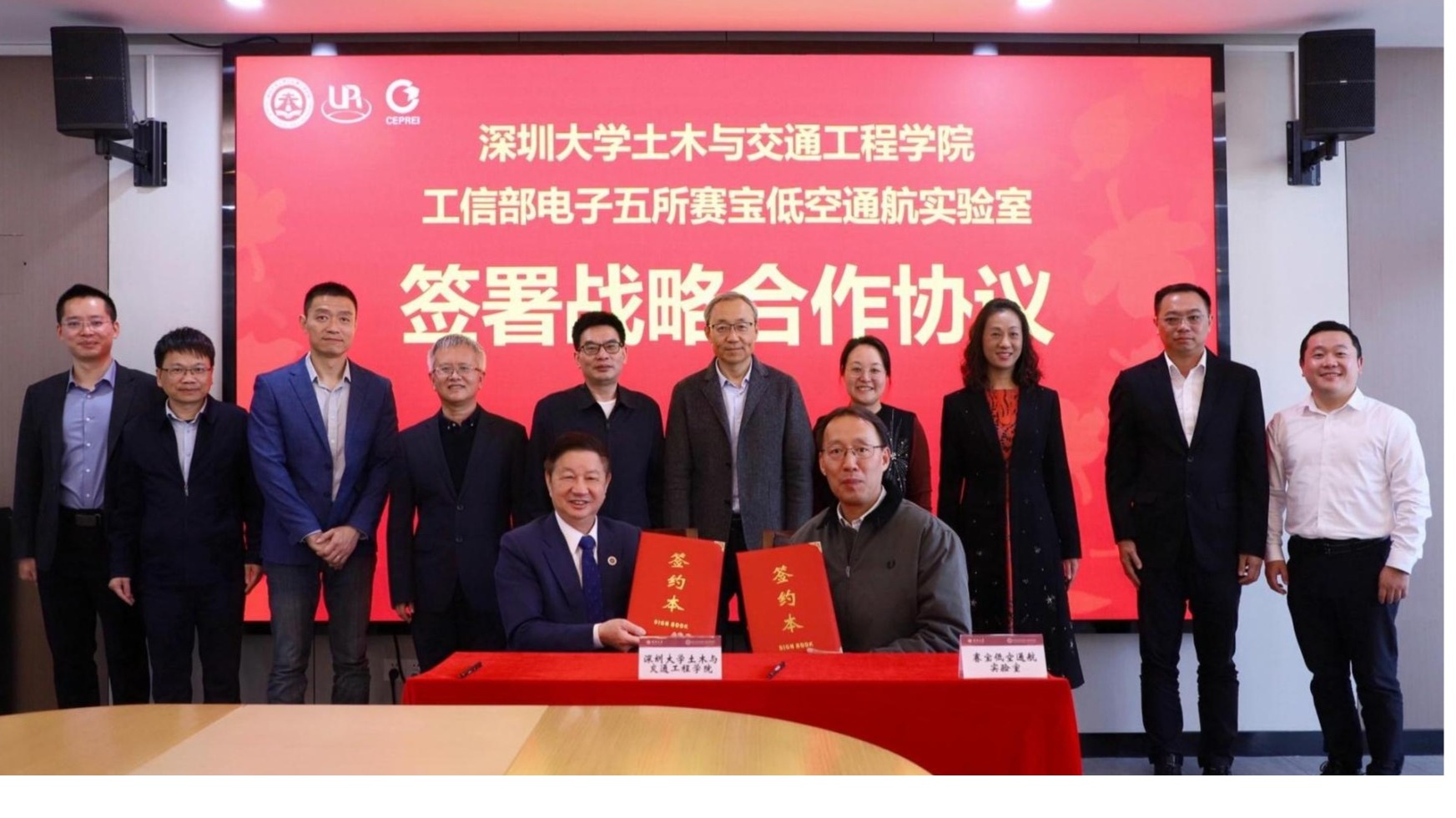 2024年12月31日下午,深圳市低空安全评估工程技术研究中心成立筹备会暨深圳大学土木与交通工程学院与工信部电子五所赛宝低空通航实验室战略合作协议签约仪式,在深圳大学粤海校区(南区)致理楼905会议室顺利举行。深圳市发展和改革委员会郑铁军副主任、深圳市交通运输局民航发展处李勇政处长、深圳市工业和信息化局信息基础设施处纪婉华副处长、深圳市南山区发展和改革局张芩副局长、公安部安全与警用电子产品质量检测中心福田...