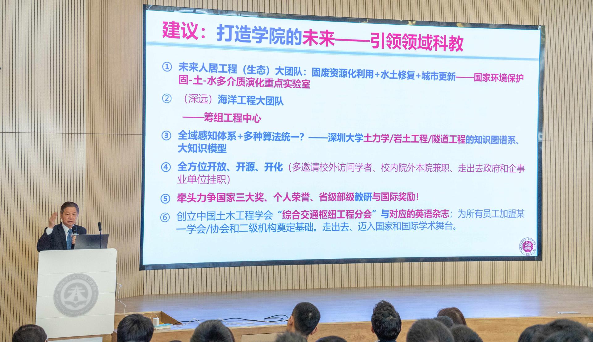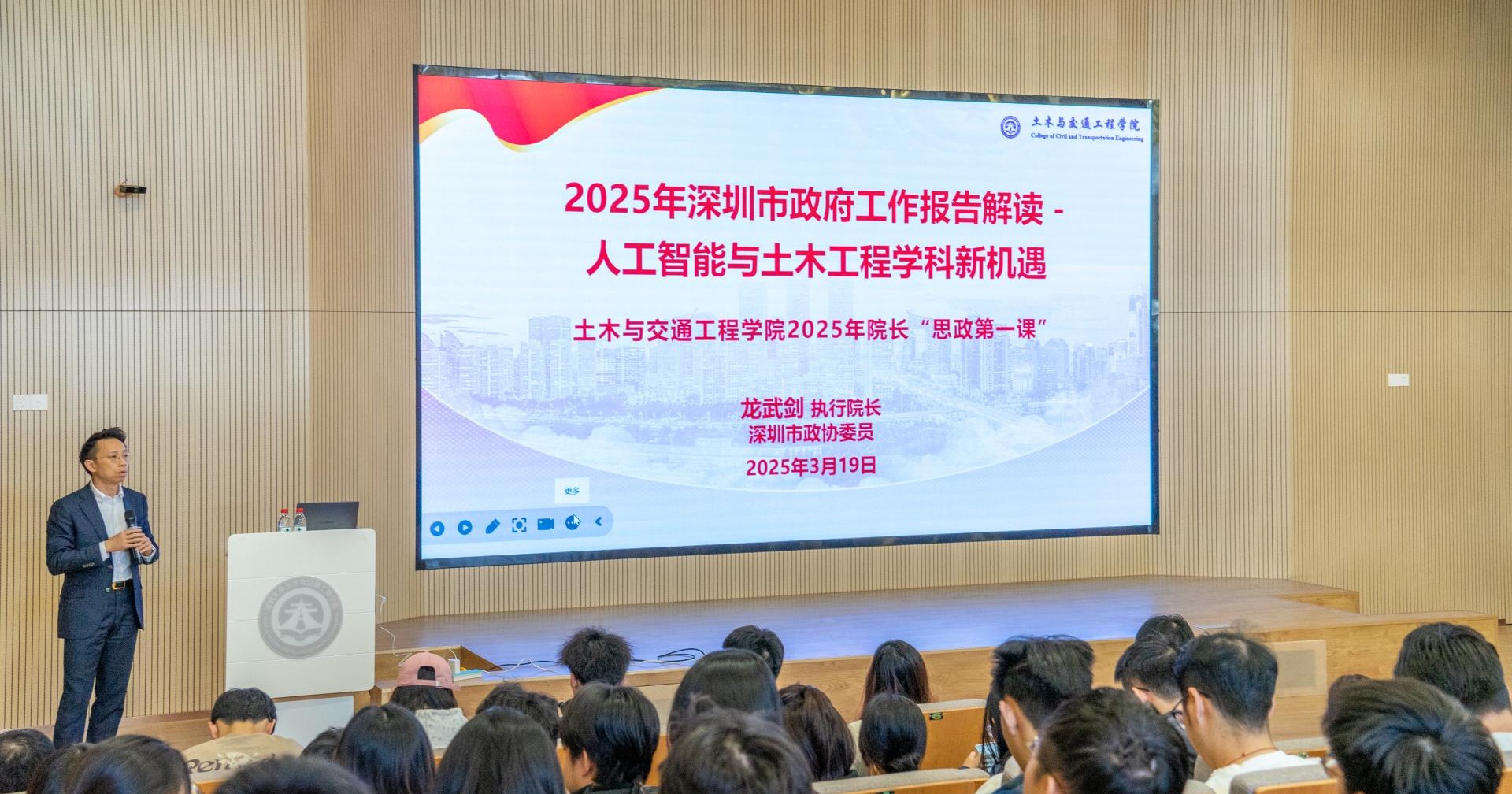 2025年3月19日,我院执行院长龙武剑教授以《2025年深圳市政府工作报告解读——人工智能与土木工程学科新机遇》为主题,为2024级研究生讲授了一堂生动的“思政第一课”。课程紧密结合深圳市发展规划与学科前沿,深入探讨人工智能技术赋能土木工程领域的实践路径,为学子们擘画学科发展与城市建设的未来蓝图。聚焦深圳发展:经济跃升与创新驱动龙武剑执行院长首先解读了深圳市2025年政府工作报告的核心内容。他指出,2025年深圳GD...