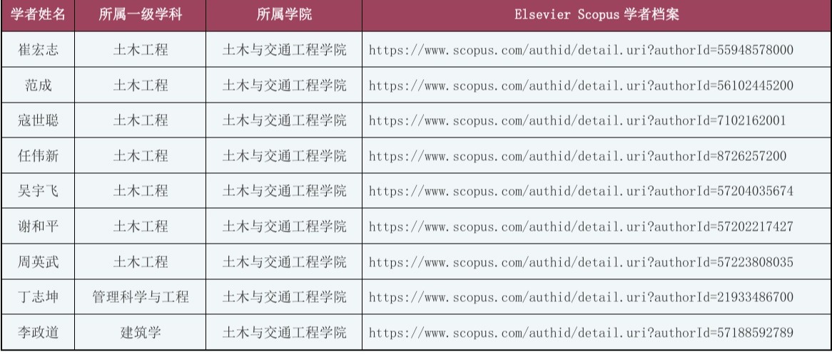 2025年3月25日,爱思唯尔(Elsevier)发布2024“中国高被引学者”(Highly Cited Chinese Researchers)榜单,本次国内共有来自547所高校、企业及科研机构的6388位学者入选,覆盖了教育部10个学科领域、83个一级学科。此次我院共有9名学者上榜,上榜人数为全校各学院之首。其中土木工程学科7名,管理科学与工程学科1名,建筑学科1名。具体名单如下(同学科按姓氏首字母排序):爱思唯尔“中国高被引学者榜单”以全球权威的引文...