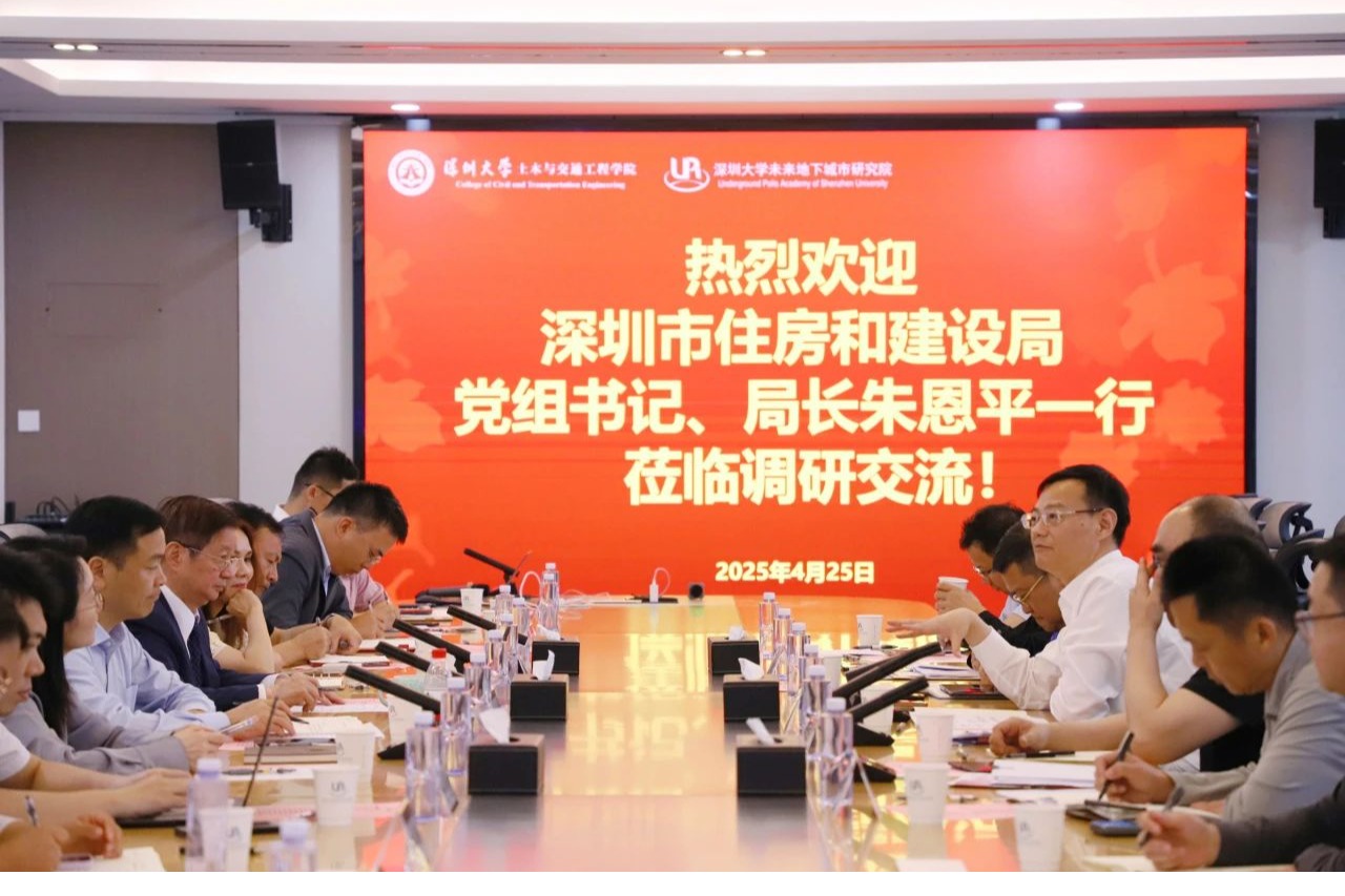 2025年4月25日下午,深圳市住房和建设局党组书记、局长朱恩平一行莅临我院开展调研交流。深圳大学党委副书记吴报水、我院及未来地下城市研究院院长陈湘生院士、人力资源部主任高颖、我院党委书记左英姿以及相关专业教师参加此次座谈交流会,本次会议在粤海校区(南区)致理楼905会议室开展。陈湘生院士首先对朱恩平局长一行的到来表示热烈欢迎和衷心感谢,并对深圳大学、土木与交通工程学院和未来地下城市研究院的发展历程、人...