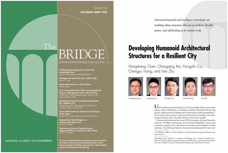 近日,依托国家自然科学基金重大项目、重点项目以及深圳市高层次人才团队项目等,陈湘生院士团队在最新出版的美国国家工程院院刊《The Bridge》春季期刊发表最新研究进展《Developing Humanoid Architectural Structures for a Resilient City》(韧性城市类人建筑结构),提出了未来建筑结构新概念,即新材料-结构-建筑智能化与全域感知预测预警协同的韧性基础设施。 文章全面描述了类人建筑结构的研究进展,提...