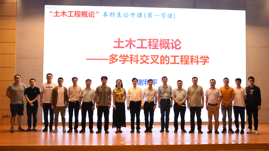 2021年10月21日下午,我校谢和平院士在汇星楼1号报告厅为我院2021级新生讲授《土木工程概论》公开课,并通过哔哩哔哩平台进行全国同步直播。