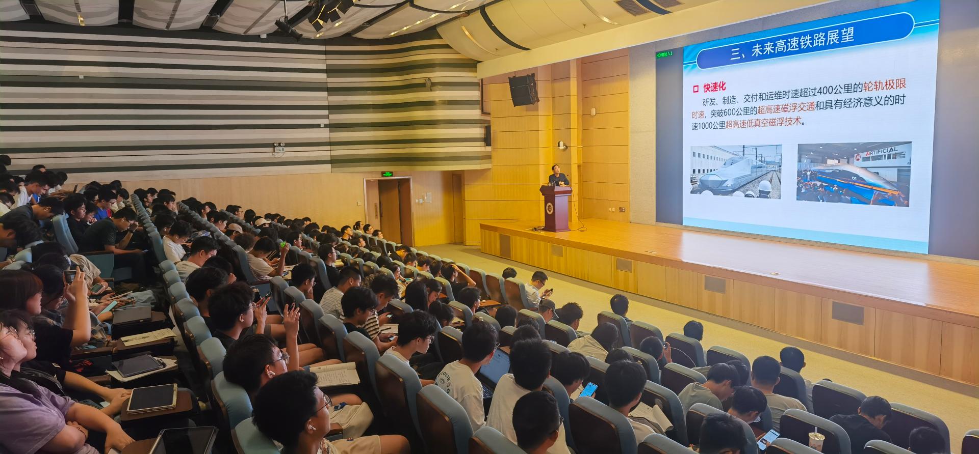 2023年11月9日晚19:00-21:00,土木与交通工程学院中国工程院院士杜彦良在汇星楼一号报告厅进行了主题为《超级工程——中国高铁》的专题报告,我院副院长杨磊、土木系主任周海俊、青年教师代表和全体200多名2023级新生参加并听取了报告,讲座由杨磊副院长主持。