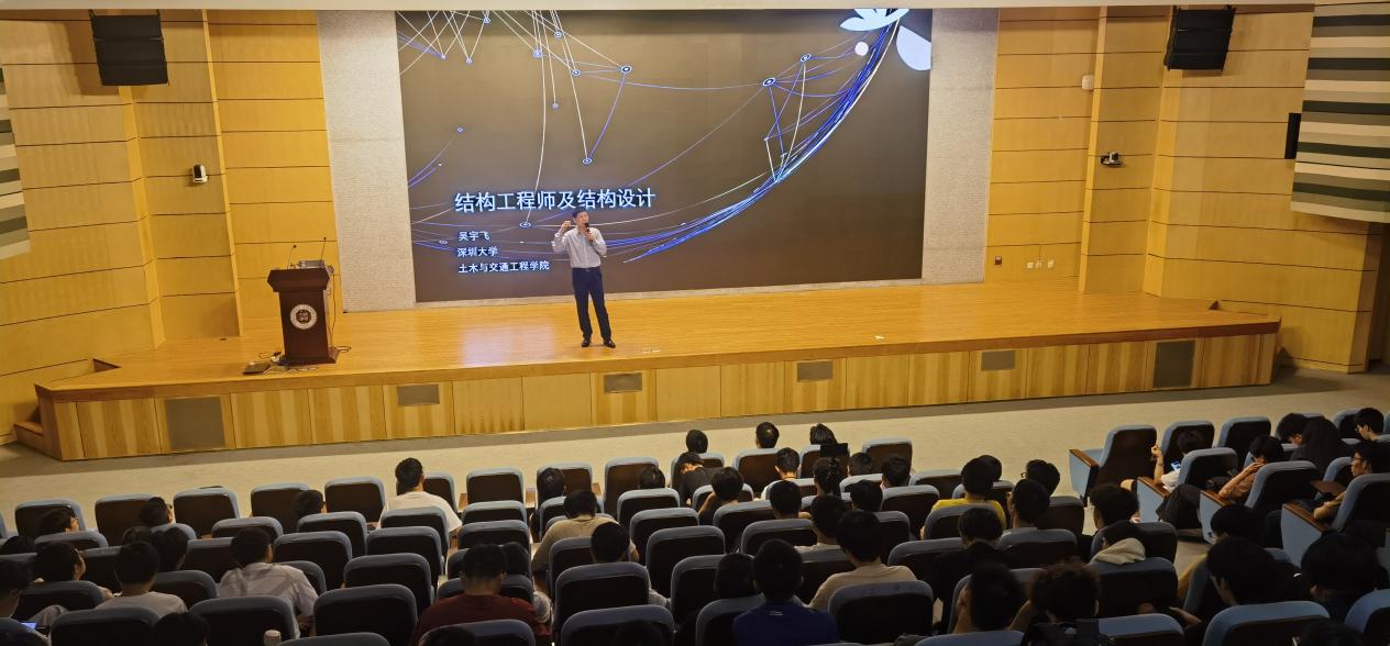 吴宇飞教授的讲座题目为《结构工程师及结构设计》。讲座内容由多个有趣的小故事开篇引领,包括MIT实验室、瑞士钟表匠的故事、Albert Einstein的故事、Isaac Newton的多个伟大发现、Alexander Fleming发现青霉素、“钱学森之问”并结合自己的工作和生活经验,紧密围绕结构工程师、结构设计及基本理论知识三个方面,为同学们在今后的学习、生活和工作中提出了宝贵的建议。