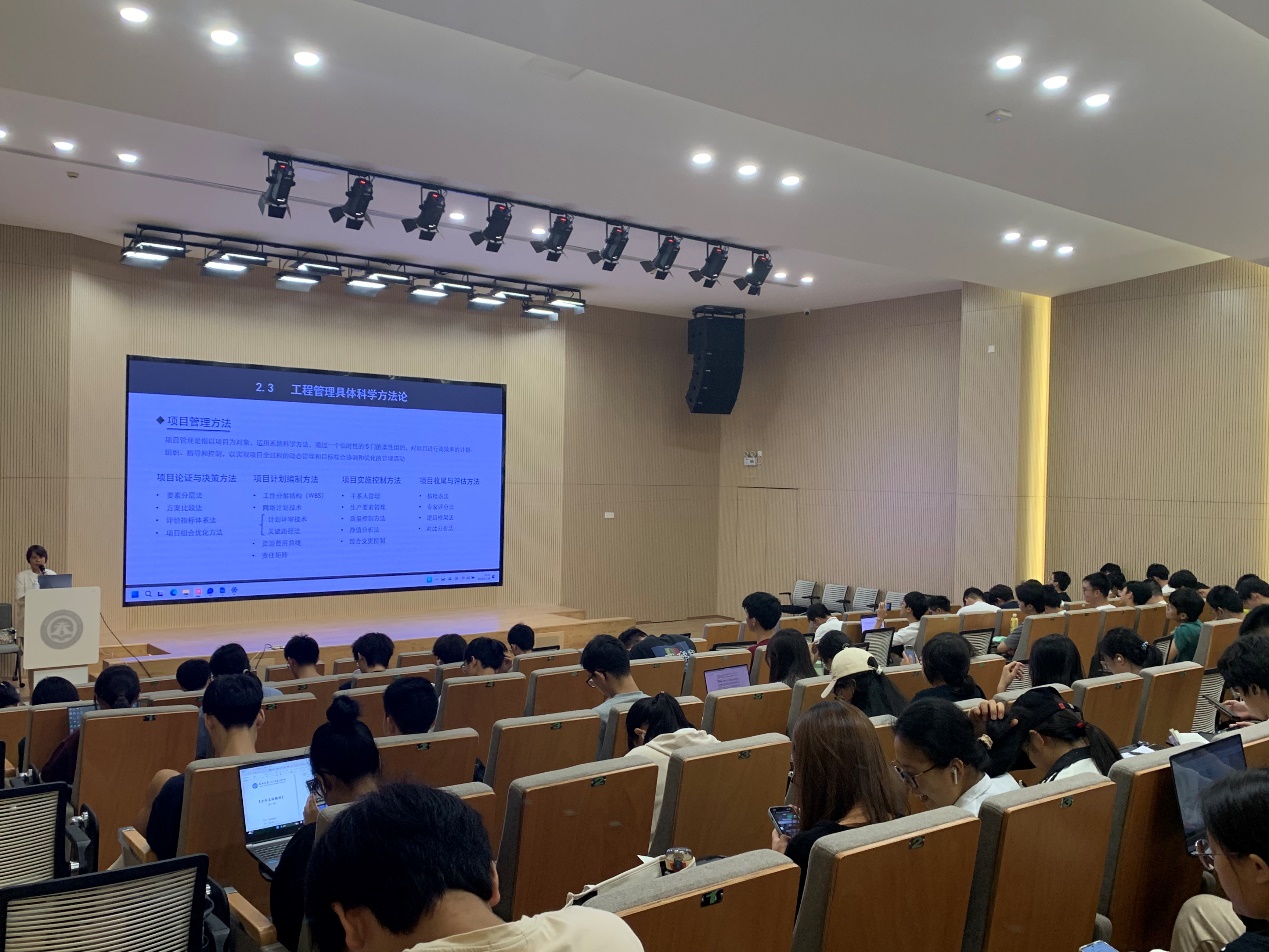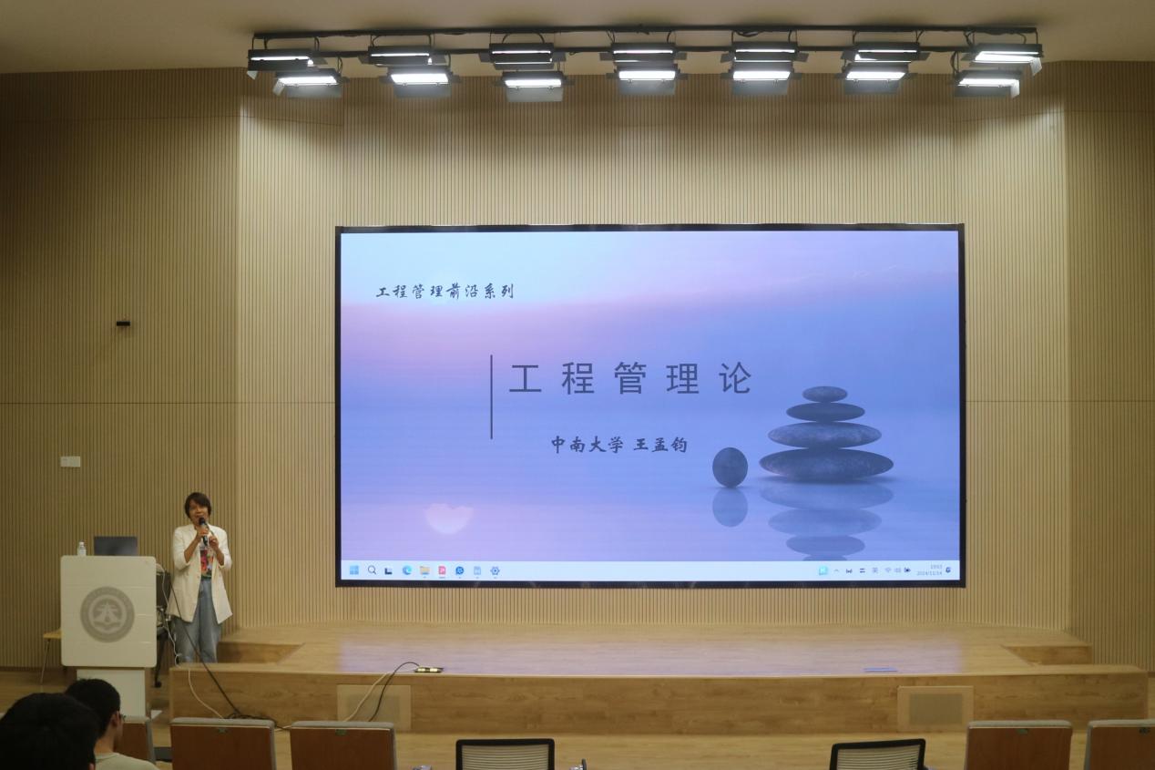 讲座题目为《工程管理论》,内容围绕工程管理十论中的认识论和方法论进行了深入探讨,分享工程管理的理论与实践知识,强调工程管理在现代社会的重要性和跨学科特征。