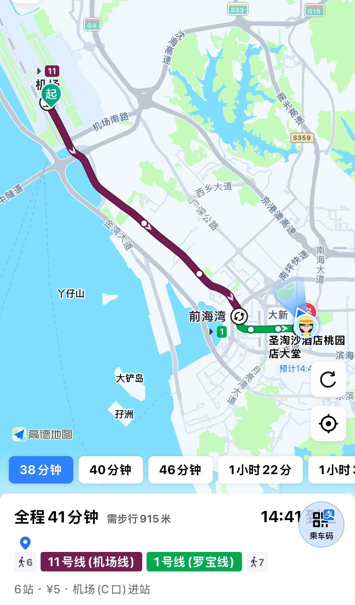 深圳宝安机场乘坐地铁11号线到前海湾换乘至地铁1号线桃园站A出口,步行150米到达酒店,车程约38分钟。