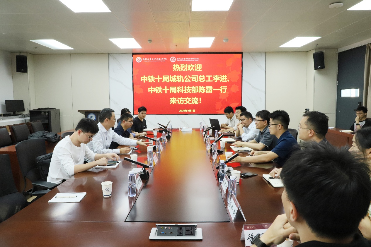 2026年4月1日下午,中铁十局城轨公司总工李进、中铁十局科技部陈雷一行来访我院,围绕顶管智能管控平台研发开展研讨交流。苏栋教授主持会议,王树英教授,特聘教授郑响凑等10位老师、博士后参加会议,本次会议在粤海校区(南区)致理楼1007会议室召开。