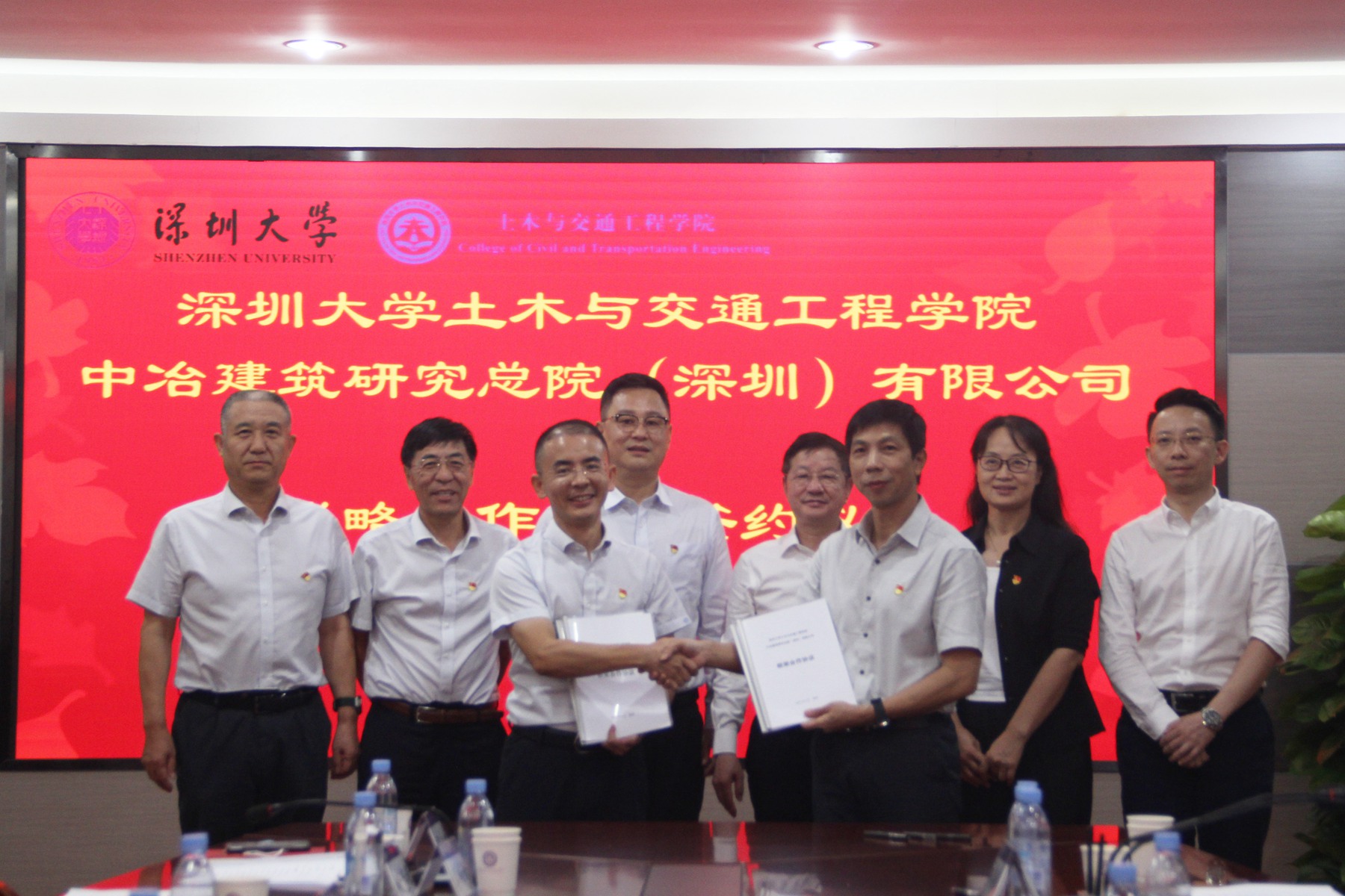 在双方与会人员的共同见证下,土木与交通工程学院党委书记李伟文和中冶建研院深圳公司党支部书记/副总经理方五军分别作为代表签署了院企战略合作协议,标志着双方正式建立战略合作关系及常态化合作机制,将在党群建设、平台建设、科技创新、人才培养等领域进行更全面、更深入的合作与交流。