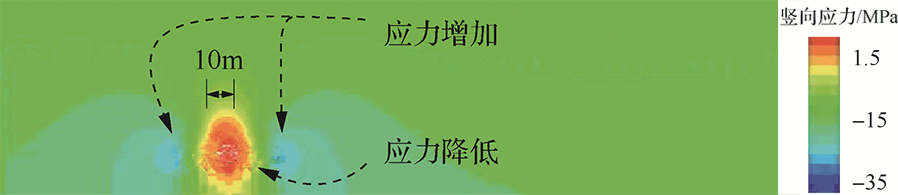 ▲煤层工作面开采过程中典型纵切面处竖向应力场的透明演化