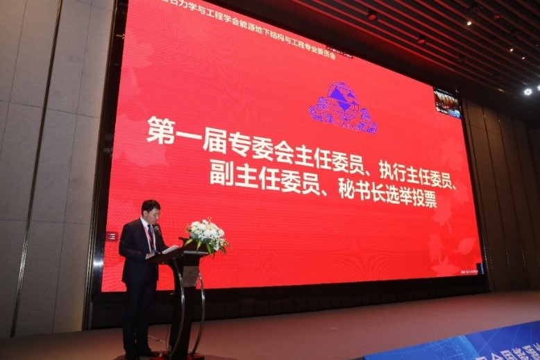随后,崔宏志教授主持了能源地下结构专业委员会第一届全体会员大会,经线上及线下全体会员投票,选举产生了第一届专委会委员,并随后由新选委员投票,选举产生了第一届委员会主任委员、执行主任文员、副主任委员、秘书长:陈湘生院士当选主任委员;崔宏志当选执行主任委员兼秘书长;程晓辉、侯鸿章、陈瑞金、李晓昭、崔宏志、李小春、张明义、孔纲强、包小华、彭晋卿当选副主任委员。