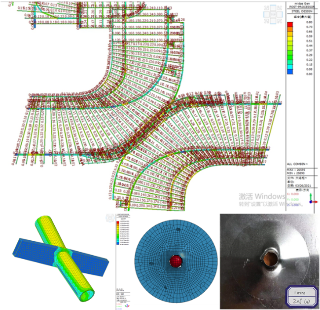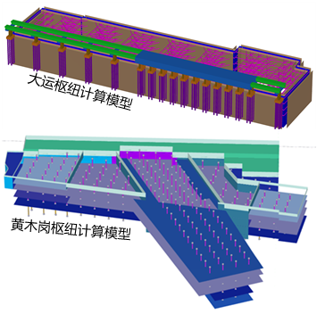 枢纽屋盖采用空间桁架钢结构体系受力复杂,加工和安装精度要求高,建造施工挑战性大。基于大跨度钢结构顶棚设计和施工方案,团队对结构体系及其它影响结构性能的关键参数进行优化,并对施工过程中的防护装备、起重设备、运输设备及其支承结构的安全性进行分析,提升项目从设计到施工全过程的技术先进性、经济性和安全性。