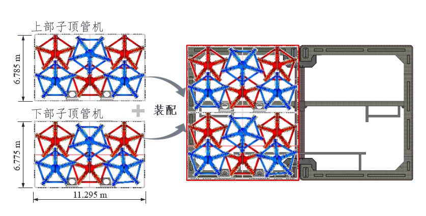 在揭示空间变位规律,建立暗挖地铁车站施工风险综合评估体系的基础上,创造性地采用组合式矩形顶管机分左右两次顶推施作车站主体结构,提出了地铁机械化暗挖车站设计理论和方法,开发了装配式车站结构,解决了多洞组合顶管管片及车站结构体系转换等设计难题。同时,基于深铁集团安全监测管理平台和大数据分析平台,开发建设了滨海繁华城区暗挖地铁车站建设信息化智能管理平台,搭建具备工程信息化管理、风险评估与预警等关键功能,实现车站建设过程实时信息化智能管控。大断面管节拼装是顶管推进过程中需要破解的又一难题。早在2020年,中国电建及各相关方面着手推动管节拼装辅助工装的设计、制造。据介绍,该专用管节拼装辅助工装高15.4米,宽9米,长13米,由两组桁架式结构组合而成,主要包括翻转平台、吊梁、拼装工装以及平移小车等部件,其作用是在管节拼装过程中提供工作平台以及保证管节的精准定位和安全平移。