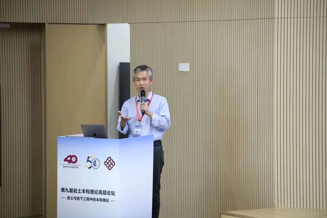 我院院长陈湘生院士、北京航空航天大学姚仰平教授致大会开幕辞。陈湘生院士在大会开幕式上介绍,深圳大学土木与交通工程学院的前身是结构与市政工程系,经历四十年的发展,学院从单一的学科门类逐渐发展成为涵盖多个一级学科的综合性学院,并指出随着科学的发展和认知的进步,“本构”的概念在工程、物理学和材料科学等领域得到延伸和推广,本构模型被赋予了更宽广的性能,模型的功能性和准确性得到了极大发展。本次论坛将深入探讨本构模型的最新进展和应用,使我们更好地理解和应用本构模型,为韧性地下空间开发的科技发展贡献更多的思路。最后,陈湘生院士对出席本次大会的各位嘉宾深表感谢,祝愿大家在本次论坛收获满满,携手为岩土本构理论的持续发展、韧性城市的建设而努力。