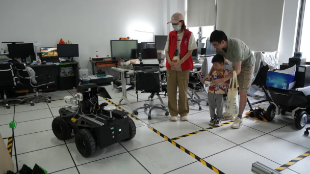 与此同时,BIM与智慧建造研究中心的开放,向公众全方位展示了建筑工业化设计理念、建筑物联网平台、地理时空信息收集系统、虚拟仿真、北斗定位、无人机、3D打印及3D激光扫描仪等先进技术系统和设备。参观中,青少年们对机器狗、虚拟仿真系统尤其感兴趣,一遍遍的亲自操作体会,并与指导老师积极互动;实验室参观激发了孩子们的科学兴趣,提高了他们观察、分析、思考的能力。通过参观,大家还了解到城市智慧建设与管理、基于BIM的智慧建造、可持续建设与管理及智慧交通与物流等土木工程领域的科技前沿。