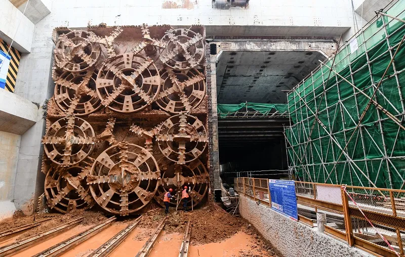 地铁地下车站常用明挖法现浇施工,要占用城市道路并开挖大量土方,工期长、碳排放高且环境影响大。在广东省重点领域研发计划资助下,陈湘生院士带领团队研发了地铁地下车站双洞密贴顶管机械化建造新技术: