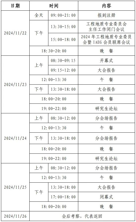 11月22日下午 工程地质专业委员会主任工作闭门会议,2024年工程地质专业委员会暨IAEG会员联席会议。