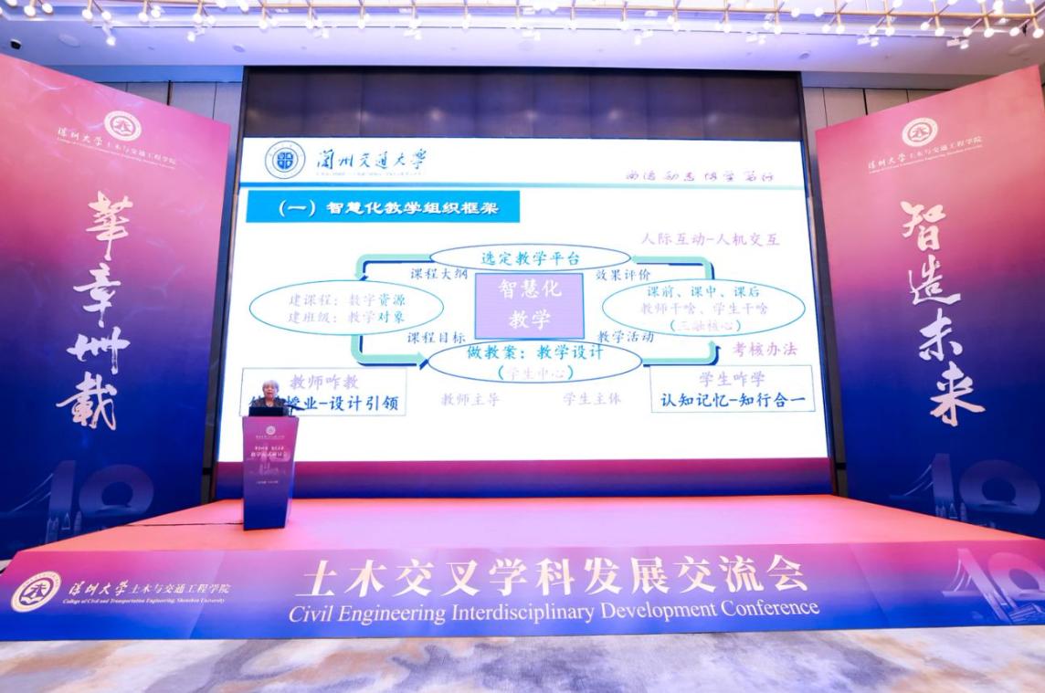 兰州交通大学土木工程学院教授、全国优秀教师宁贵霞作《基于“学生中心、三融核心”的智慧化教学组织与思考》报告,提出课程内容的组织和教学方法要围绕学生的知识需求和职业成长为中心,思政、产教融合和科教融汇的“三融”核心,指出课程建设的目标要围绕知识、能力、素质三个维度去融合“三融”核心,落实新课建设的标准,实现高阶性、创新性和挑战度,并提出教师应与时俱进、授人以渔、天道酬勤,在教学过程中实现文化的传承。