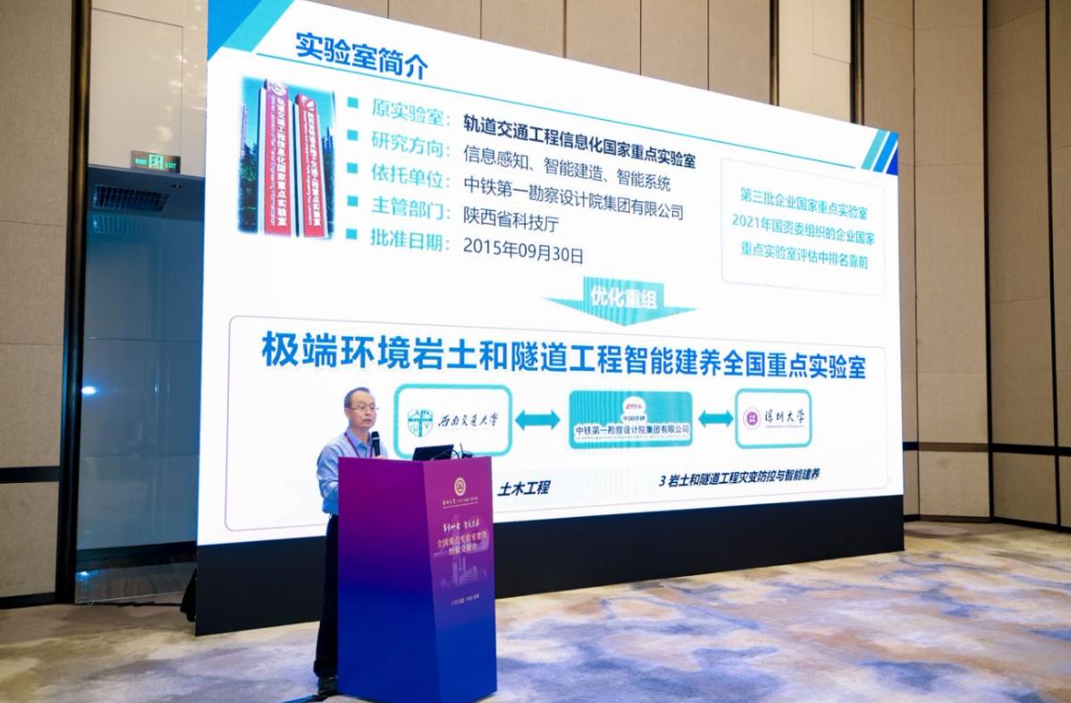 中国矿业大学副校长、深地工程智能建造与健康运维全国重点实验室常务副主任张吉雄教授,同济大学土木工程学院、土木工程防灾减灾全国重点实验室副主任曹曙阳教授,中铁第一勘察设计院集团勘察设计大师、极端环境岩土和隧道工程智能建养全国重点实验室主任李国良总工程师,中交第一公路勘察设计研究院有限公司勘察设计大师、极端环境绿色长寿道路工程全国重点实验室主任汪双杰总工程师,上海交通大学船舶海洋与建筑工程学院副院长、 海洋工程全国重点实验室副主任彭涛教授,北京中煤矿山工程有限公司董事长、矿山深井建设技术国家工程中心富强理事长先后分享了各自所负责的国家级平台建设情况。