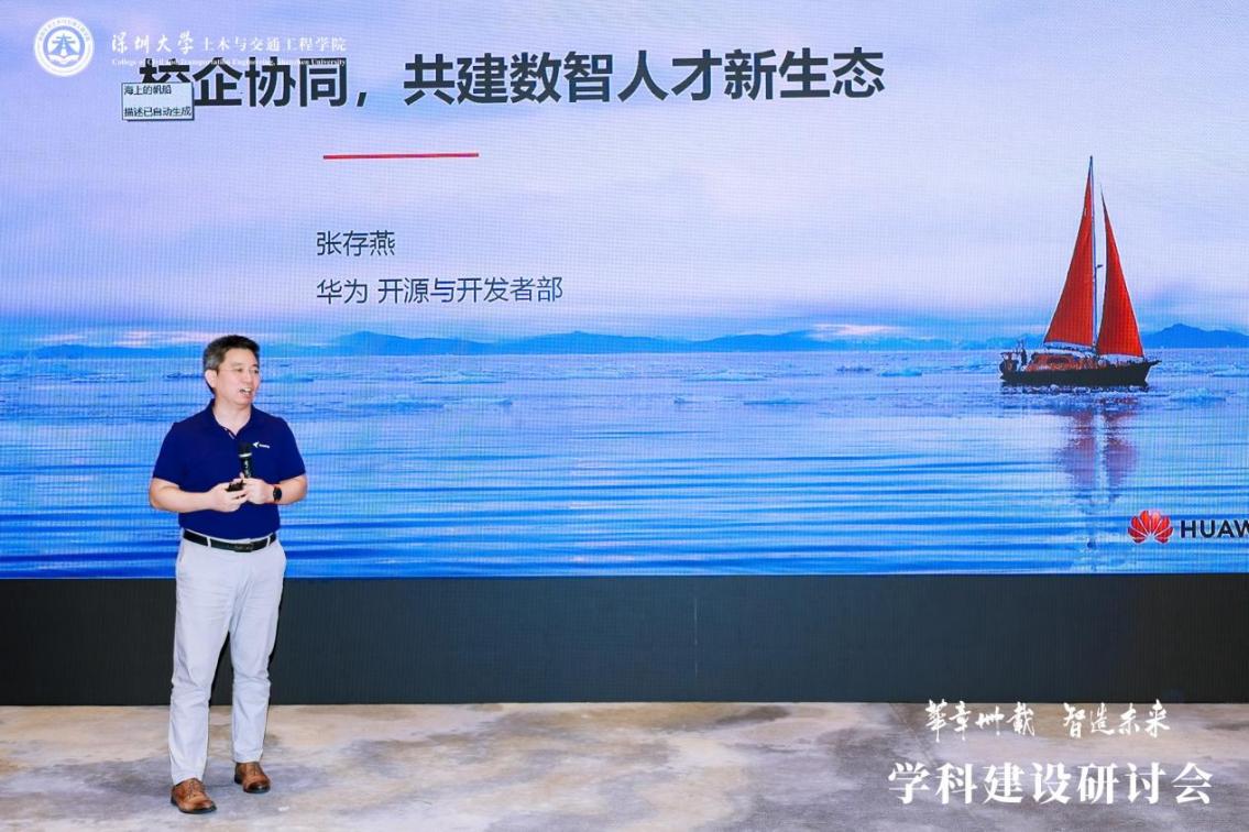 华为技术有限公司开源与开发者发展部副部长张存燕作《校企协同,共建数智人才新生态》的邀请报告,指出人类社会正加速迈向全面智能化时代,产业人才需求结构发生变化,高校人才培养体系将面临重组,产教融合是培养智能时代创新人才必不可少的路径。