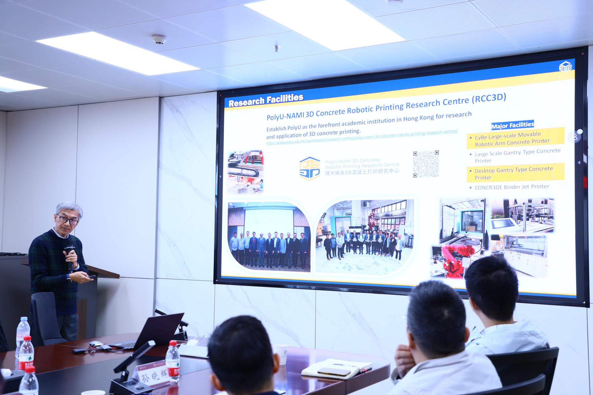 报告概述了潘教授在低碳胶凝材料与高强轻质混凝土的研发、废弃混凝土碳化技术与机理、3D混凝土打印技术等方面的最新研究成果。在讨论环节,潘教授和与会师生就香港明日大屿可持续填海工艺、混凝土高效碳化工法、碳化材料耐久性和生命周期碳排放评估等方面展开深入交流。