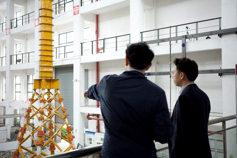 随后,刘纲主任带队参观山区土木工程安全与韧性全国重点实验室、山地城镇建设与新技术教育部重点实验室,介绍了抗震性能震动台和ML大坝震动台等实验装置和科研教学成果。