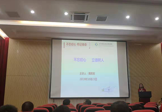 首先,隋莉莉副院长为全体教职工上了一堂名为“不忘初心,立德树人”的党课。围绕“不忘初心、牢记使命”主题教育的要求与内涵,隋莉莉副院长从《习近平关于教育的论述》一书切入,对“坚持把立德树人作为教育的根本任务”展开论述。立德树人根本任务,将其定位置于全面发展之上,这是以习近平同志为核心的党中央继承、丰富和发展党的教育方针的集中体现、重大发展及最新成果。立德树人揭示了教育的本质,即如何培养人;立德树人揭示了德育的突出地位,即德性成长是教育的根本任务;立德树人揭示了道德发展与人的全面发展的辩证关系,它是人的全面发展的根本保障,体现了党对教育规律的深刻认识。必须树立育人为本的教师职业观和必须树立育人为本的教育政绩观和教育评价观,做有理想信念、有道德情操、有扎实学识、有仁爱之心的好老师,学生锤炼品格的引路人,做学生学习知识的引路人,做学生创新思维的引路人,做学生奉献祖国的引路人。此外,隋莉莉副院长还为大家深入讲解了“如何理解师德师风”和“如何贯彻和落实师德师风”。当前学院以“面向行业、立足深圳、服务深圳经济建设”为办学思想,应找准定位,以良好的教学资源和优秀的师资队伍为依托,不断提升本科教学水平。全体教职工应当爱岗敬业、尽职尽责,不断传承和发展“夯土筑诚,砺木至臻”的学院文化精神,全面引领学院提升教学、科研和国际化水平,向更高目标前进。