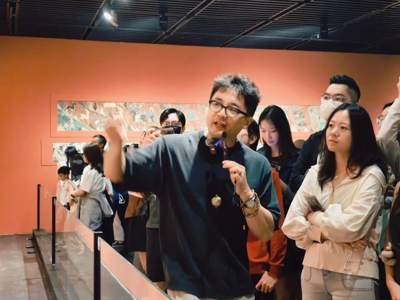 2025年11月1日下午,第十二期工程管理文化沙龙暨工程管理科学系教工党支部和硕士生第二党支部“‘研’途有我,师生‘砼’行”主题党日活动在深圳市南山博物馆顺利开展。本期活动由李昇翰老师主讲,全院20余名师生共同参与,一起走进“大成敦煌—敦煌文化艺术大展”,开启一场跨越千年的文化艺术之旅。