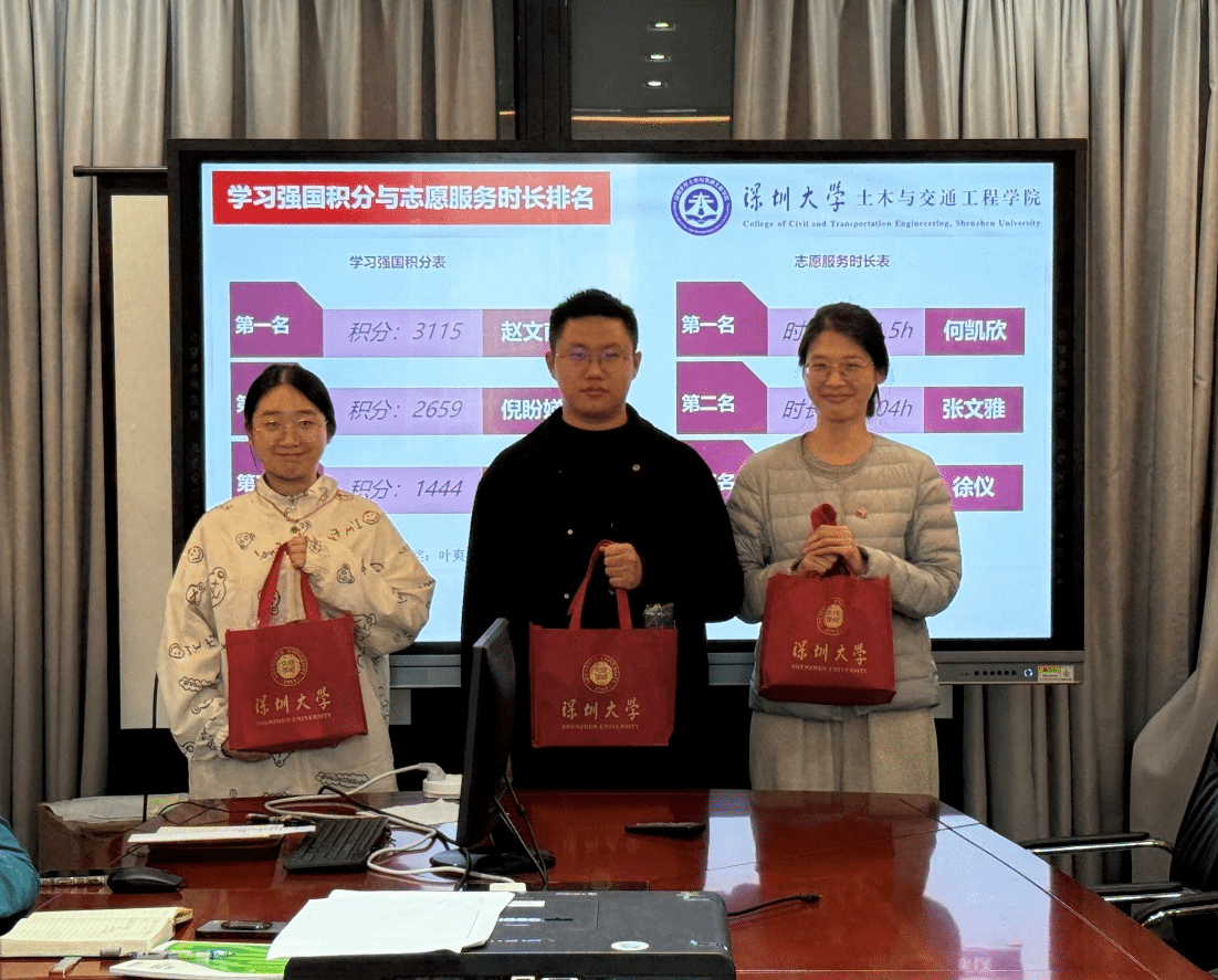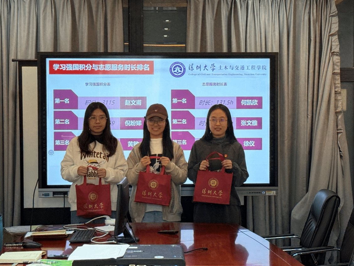 为贯彻落实党的二十届四中全会精神,扎实推进学习型、服务型党支部建设,激发支部成员自主学习与志愿服务热情,2024年11月20日,深圳大学土木与交通工程学院硕士生第三党支部在沧海校区致理楼L1-1504成功举办“‘学习强国 ’促提升 志愿服务践初心”友好交流暨支委表彰活动。本次活动旨在搭建交流平台,推动理论学习与实践服务深度融合,营造“比、学、赶、帮、超”的积极氛围,鼓励党员在学思践悟中强本领,在担当作为中显先进。