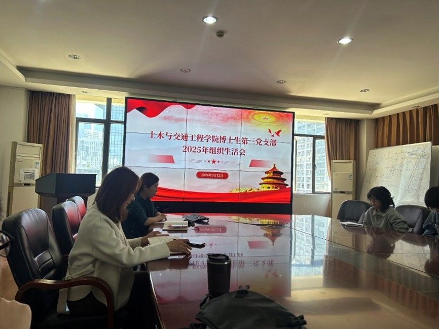 2026年3月12日,土木与交通工程学院博士生第三党支部在致工楼C501召开2025年度组织生活会暨民主评议党员大会。会议由党支部书记裴纯主持,支部全体党员参加,党委左英姿书记列席指导。