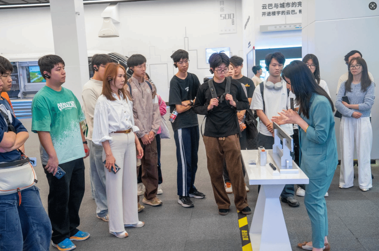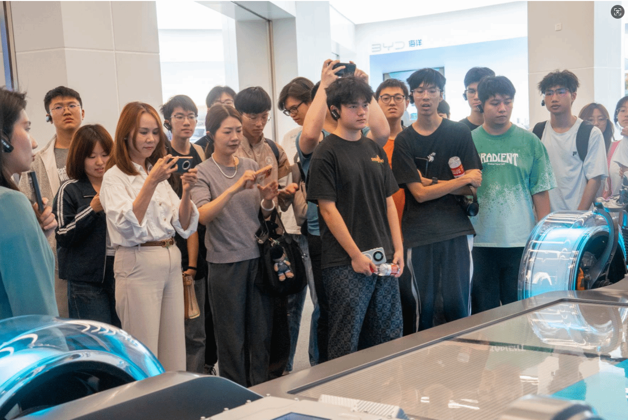 从重新定义新能源汽车安全标准的刀片电池——凭借独特的CTP技术和蜂窝状支撑框架设计,抗压能力提升至传统电池包的十倍,散热效率提升50%;到实现能效革命的DM-i超级混动技术;从集成创新的e平台3.0,到赋予车辆持续进化能力的DiLink智能网联系统,到穿梭于楼宇间的智慧交通解决方案"云巴",师生们沉浸在一个个"黑科技"展项前,不时驻足观看、提问交流。课本上的力学原理、材料科学、自动化控制,在这里变成了飞驰的新能源汽车和高效的流水线模型。