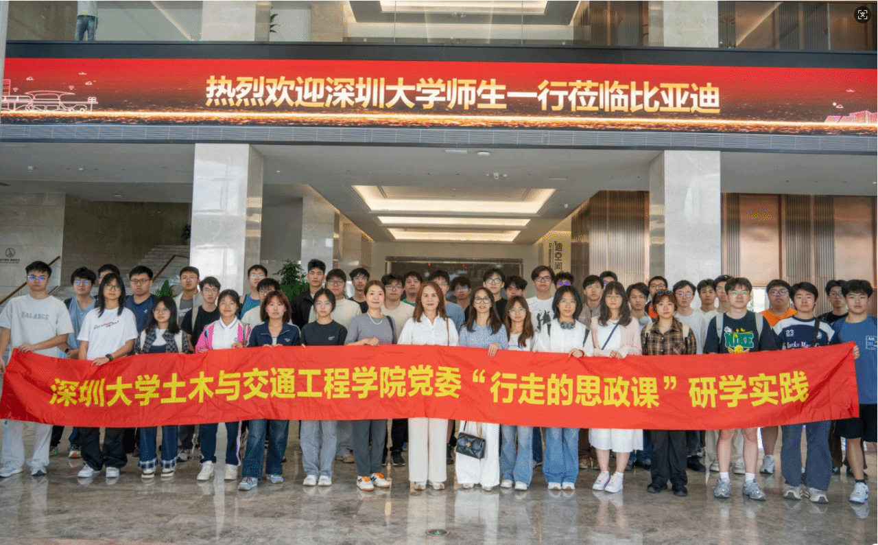为深入贯彻落实立德树人根本任务,创新思政教育形式,将思政小课堂与社会大课堂紧密结合,3月19日,学院党委书记左英姿带队,以“行走的思政课”形式开展了新学期“思政第一课”。学院院长助理裴纯、党务秘书熊玉芬及2025级本科生及毕业生代表一行50人共同参加,前往全球新能源领军企业——比亚迪股份有限公司进行实地研学参观。