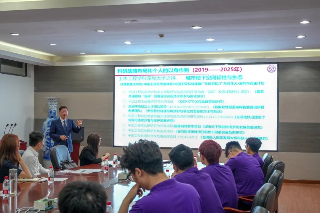 陈湘生院士回顾了土木工程学科的发展脉络,指出行业正加速向数智化、绿色低碳、智慧建造方向转型,他勉励全体师生要“领土木工程时代之潮,创土木学科深大之特”,主动拥抱变革、立足前沿。他结合多项深地深海、智慧交通等前沿技术在深圳的落地应用案例,为同学们直观展现了土木学科服务国家战略、支撑城市高质量发展的广阔前景,让大家深刻体会到新时代土木人的使命与荣光。