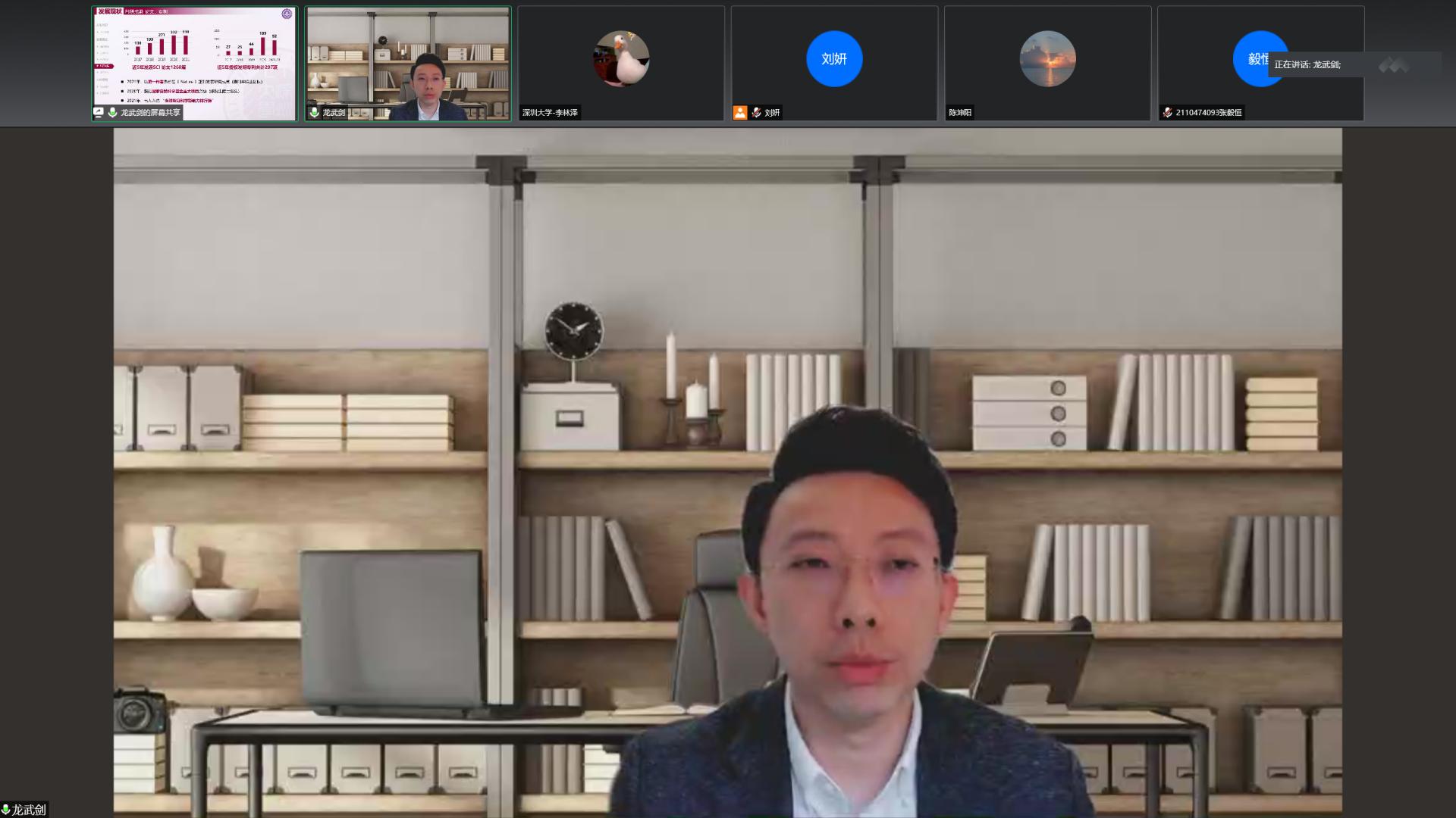 龙武剑院长结合学院的发展历史、发展现状和未来规划三个方面,希望同学们要抓住深大快速发展的机遇,利用学院优越的教学水平和科研力量,不断的充实自己,增值自己,为未来的工作和生活打下良好的基础,积极投身于国家重大工程建设和重大发展战略之中。勉励大家要牢记使命,坚定信心,为学校高水平大学建设坚持学习、扎实工作,以优异成绩迎接党的二十大胜利召开!希望同学们牢记“夯土筑诚,砺木至臻”的院训精神。