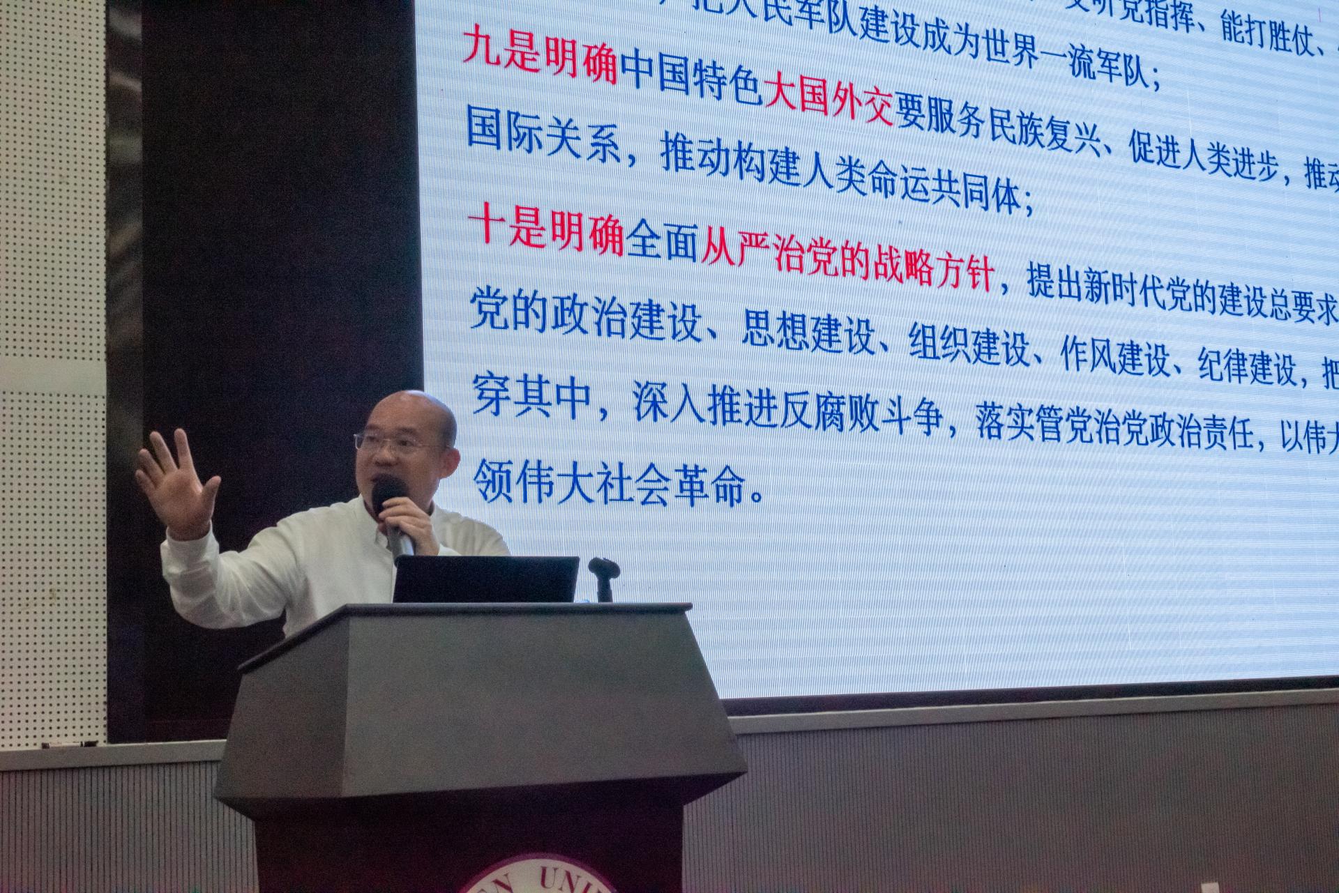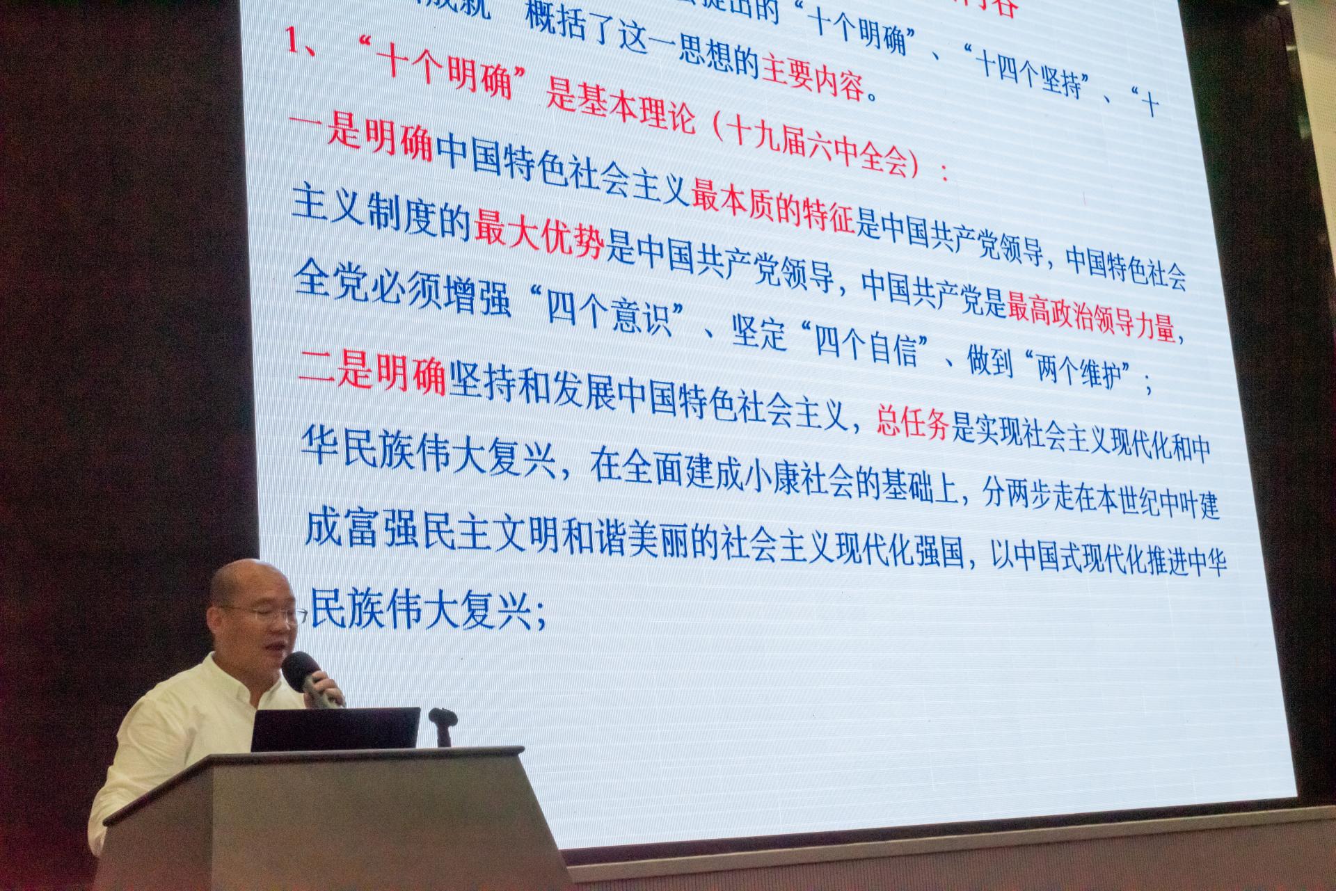 讲座中,傅鹤鸣院长从搞懂弄通新思想的来龙去脉、历史地位、主要内容、精神实质、开辟新境界等方面对习近平新时代中国特色社会主义思想进行了整体性解读。