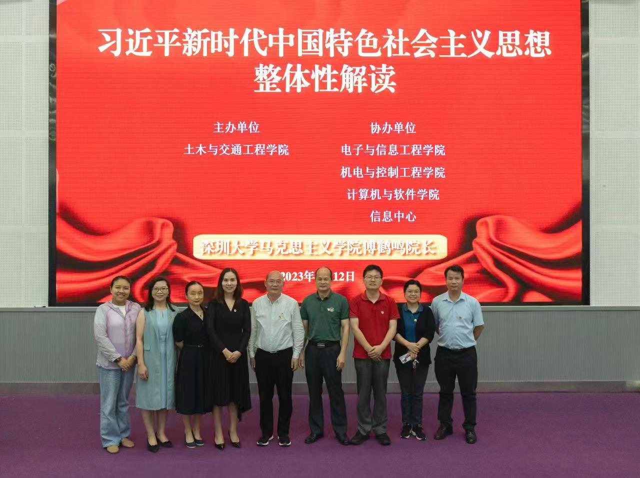 为深入开展学习贯彻习近平新时代中国特色社会主义思想主题教育,全面深入解读习近平新时代中国特色社会主义思想的内涵和精髓,教育引导师生全面学习、深刻领会、贯彻落实习近平新时代中国特色社会主义思想,2023年5月12日,土木与交通工程学院联合计算机与软件学院、电子与信息工程学院、机电与控制工程学院、信息中心邀请深圳大学马克思主义学院院长傅鹤鸣教授作《习近平新时代中国特色社会主义思想整体性解读》的专题讲座。本次讲座共有200余名师生到场聆听。