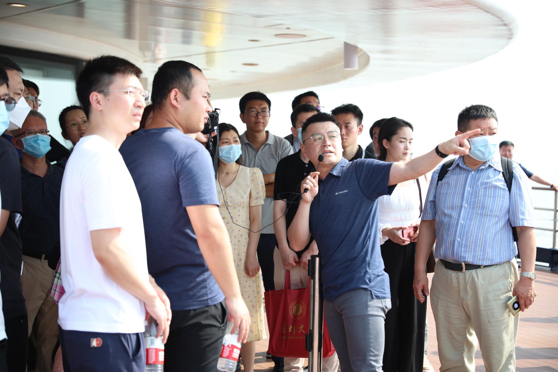 学院一行九十余人从深圳蛇口邮轮母港出发,沿着珠江口海域一路南下。行船过程中可以远眺港珠澳大桥。港珠澳大桥是中国境内一座连接香港、广东珠海和澳门的桥隧工程,从开工建设到正式通车历时8年多时间,是长度达55Km的超级工程。港珠澳大桥因其超大的建筑规模、空前的施工难度和顶尖的建造技术而闻名世界。我院陈湘生院士团队始终致力于加强原创性、引领性科技攻关,科研服务国家战略,在港珠澳大桥建设相关技术中也贡献了学院的力量。