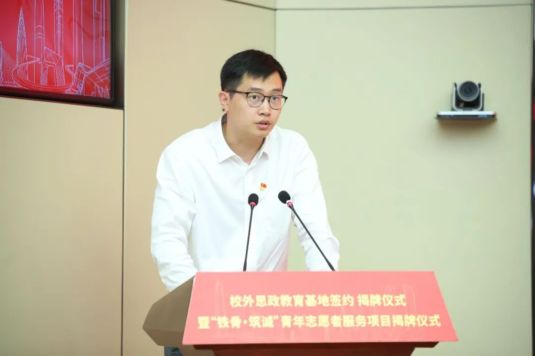 深圳大学副校长汪永成谈到,深圳大学始终坚持将立德树人作为根本任务,始终坚持把思想政治教育贯穿教育教学全过程,与中建科工签约校外思政教育基地并开展“铁骨·筑诚”青年志愿服务项目对于深圳大学具有重要意义。希望通过深入的校企合作,进一步培养深大青年的社会责任感和公民意识。同时,期待校企双方能够不断提高合作水平,形成优势互补、互惠互利、相互促进、合作共赢的良好局面,携手为大湾区新时代建设、深圳“中国特色社会主义先行示范区”建设贡献力量。