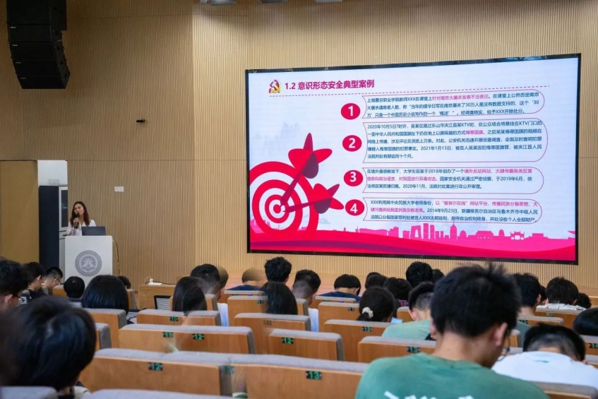 谈及意识形态安全时,党委书记左英姿指出一些错误思潮对大学生造成侵蚀和误导。劝诫大学生要不断增强政治敏锐性和政治鉴别力,对容易诱发政治问题特别是重大突发事件的敏感因素、苗头性倾向性问题,做到眼睛亮、见事早、行动快,及时消除各种政治隐患。生活中要做到防范境外敌对势力渗透,警惕参与网络负面舆论,警惕非法宗教、邪教渗透,不围观、参与非法游行集会,不携带违禁书籍、报刊杂志、宣传品、盗版图书或电脑软件入境。