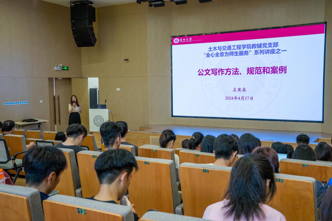 为进一步提高学院行政办公水平,提升管理技术人员综合素质,2024年4月17日,教辅党支部在致工楼A431报告厅举办了“全心全意为师生服务”系列讲座第一期《公文写作方法和规范》。本次讲座邀请学院党委书记、教辅党支部党员左英姿同志主讲,党委副书记陈碧霞同志主持,学院全体管理技术人员、学生助理及党建中心全体成员参加培训。