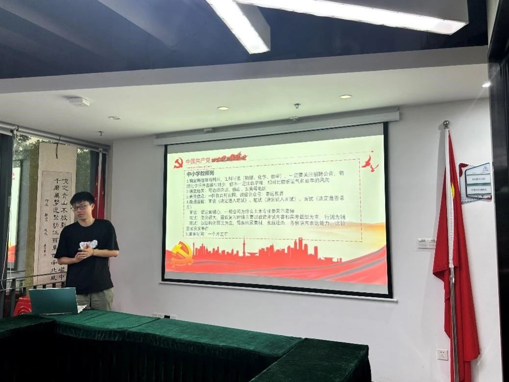 首先,支部书记张晨老师介绍了本次分享会的目的,并提醒同学们要了解当前的就业环境并尽早规划,利用好学院提供的就业资源,在兼顾科研的同时,掌握各类就业信息,打破信息壁垒。